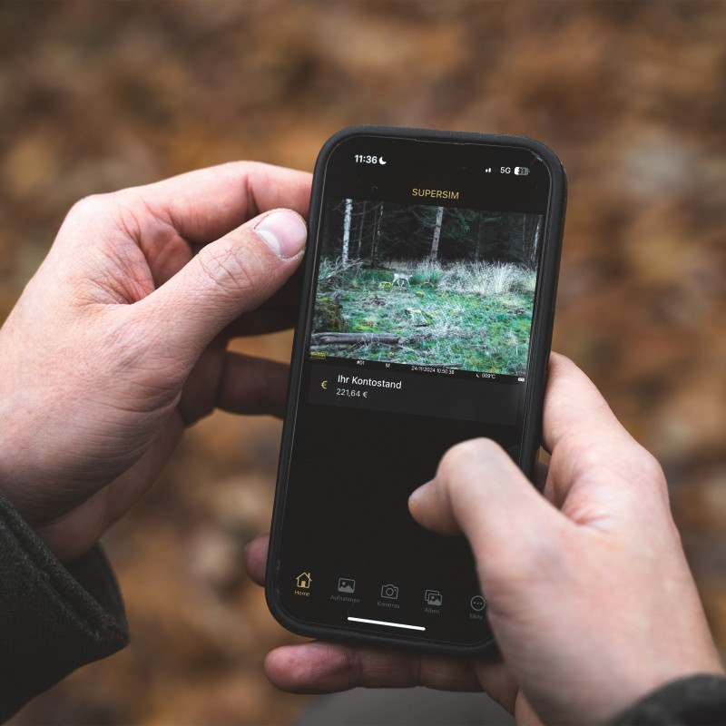 Dank der SUPERSIM-App steuerst du die Kamera bequem aus der Ferne, empfängst Aufnahmen in Echtzeit und kannst sogar manuell auslösen – ohne Bewegung vor der Kamera.