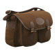 braun, aus lodenähnlichem Stoff (100% Wolle) mit Leder kombiniert, Innen Nylonfutter, Hauptfach mit Zweiwegereißverschluss, 2 Außentaschen, 1 großes Fach auf der Rückseite